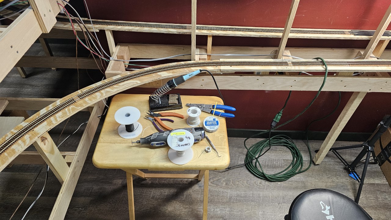 By the time I have all sixteen stations connected I estimate I'll have run nearly 1000 feet of thermostat wire around the layout.