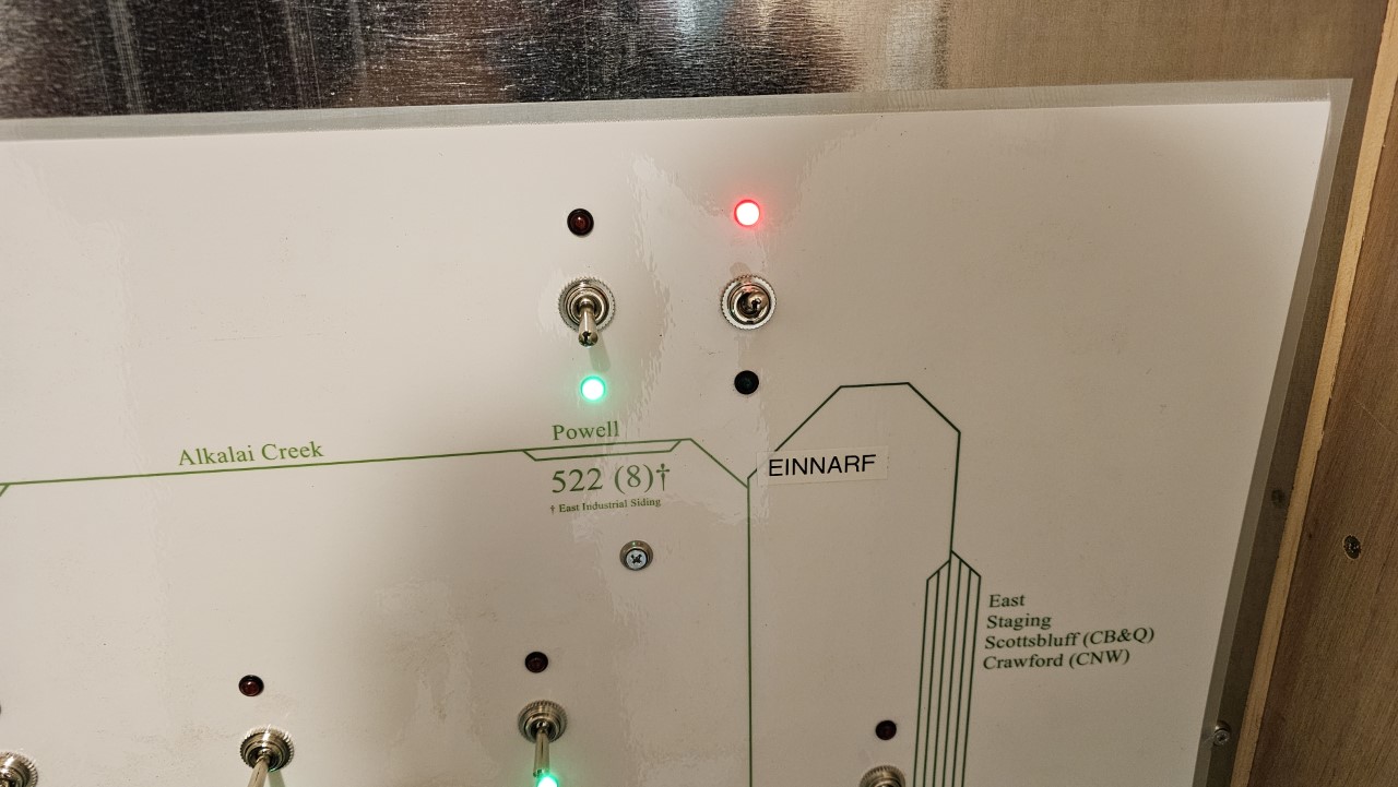 One late addition to the system was designation of the switch taking the Cody branch off the line to East Staging "Frannie." A new set of signals will be installed for that. Calling that turnout Frannie confused the heck out the dispatcher - that junction real life comes off the west end of the Casper division, so on the layout that would lead to West staging.