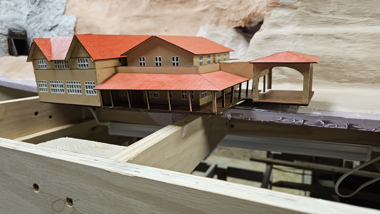 I planned to scratchbuild a model of the Burlington Inn in Cody at some point in the future, probably years from now. But a member of the Casper model railroad club recently got a laser cutter and offered to try to make a model for me. I sent him all the pictures of the Inn I could find, and he dropped this model off the day of the operating session. This is great - now I don't have to build one myself! This will be placed next to the tracks at the end of Cody when I get that last section built.