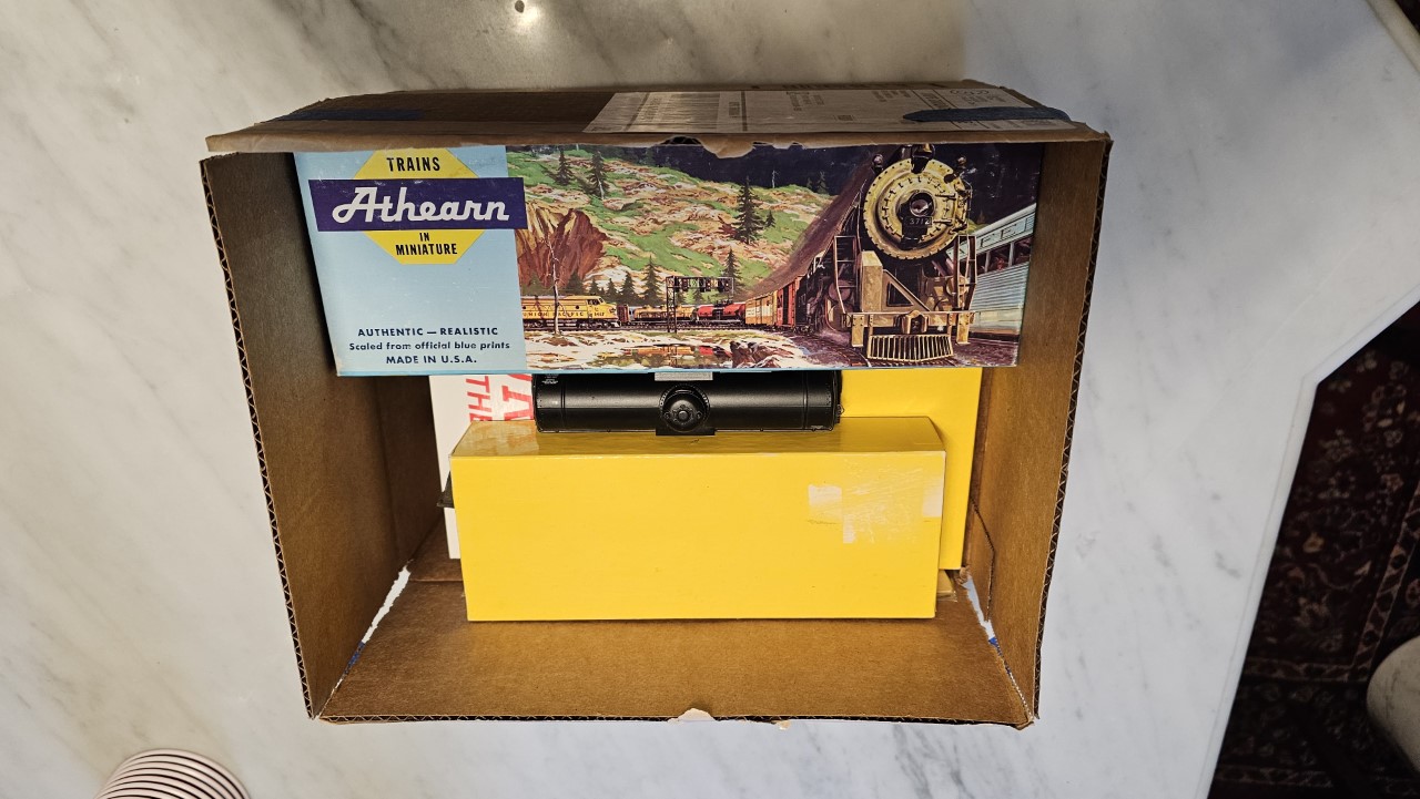 My good friend Dave decided to help out. He gave me this box of cars - eight boxcars and one tank car. All I need to do is add Kandee couples and wheels to most of them, then weather them and put them on the layout.